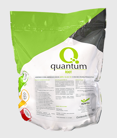 QUANTUM ROOT favors rooting and vegetative growth of plants through rapid protein synthesis. Consequently crops benefit from a breakthrough in the production of fruit. Its use stimulates root development and mycorrhization so it favors the assimilation of nutrients with a consequent growth and development of crops. Promotes significant increases in crops, increase yields and productivity, promotes vigorous and healthy crops.