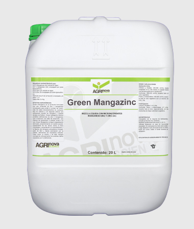 GREEN MANGAZINC es un formulado con alto contenido en zinc y manganeso. Se presenta como solución líquida altamente concentrada.